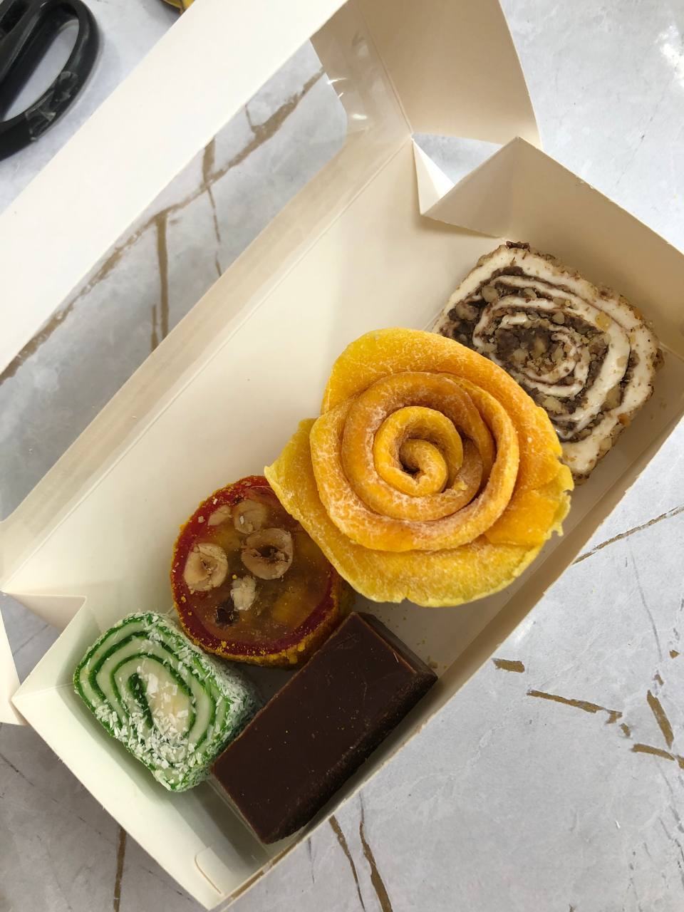 Состав набора: ✅ чурчхела по армянскому рецепту; ✅ рахат-лукум из Крыма ✅ ложки из молочного и тёмного шоколада, Турция ✅ чекме-халва, Турция ✅ варенье, Крым ✅ чай, Крым